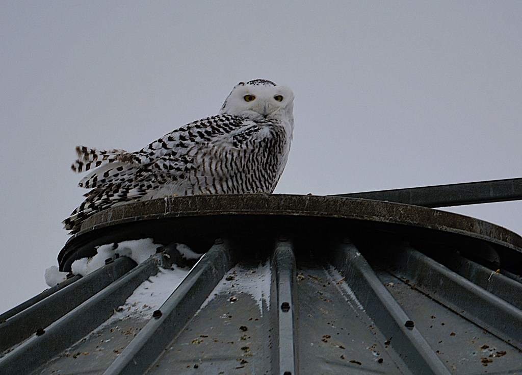 L’oiseau emblème du Québec depuis 1987 nidifie au nord, mais il est souvent vu au sud en hiver en milieu agricole à la recherche de petits rongeurs et d’oiseaux. L’adulte est presque tout blanc. On retient chez le harfang sa face d’un blanc immaculé. On le voit souvent perché sur des poteaux, des piquets ou des silos. Il a une présence presque fantomatique par temps gris et neigeux.