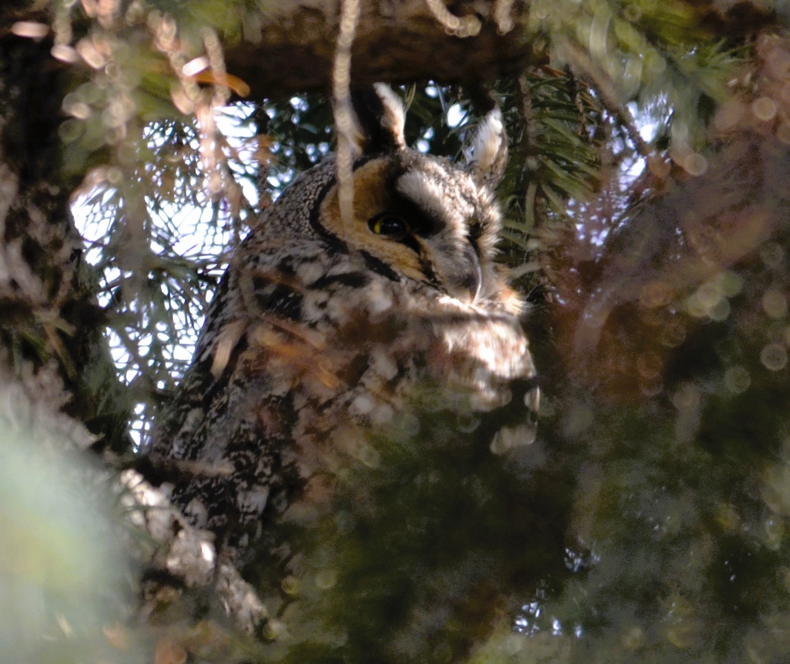 Hibou de moyenne taille, plutôt élancé. Sa face est partiellement orangée. Il a de longues aigrettes ressemblant à des oreilles. Il est strictement nocturne. Il se tient dans des zones offrant un mélange de couvert dense où il se repose, comme des bosquets de conifères, et où il y a des espaces découverts par la chasse. Généralement rare et pas souvent aperçu. Toutefois plusieurs peuvent se regrouper dans des dortoirs hivernaux. C’était sans doute le cas au parc Frédéric-Back de Montréal durant l’hiver 2024. Quatre spécimens avaient choisi deux conifères voisins pour passer l’hiver. Ils ont enchanté les photographes.