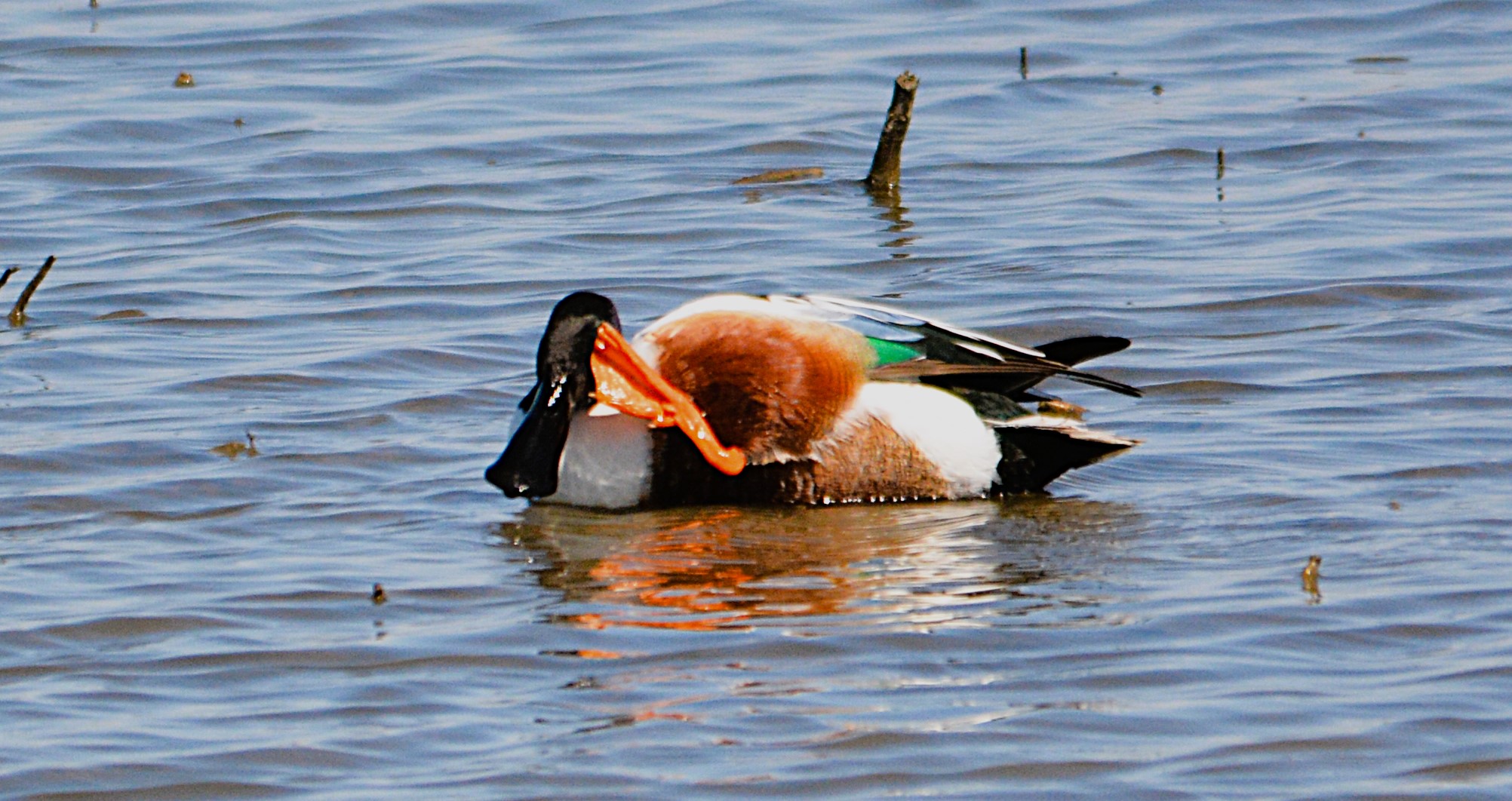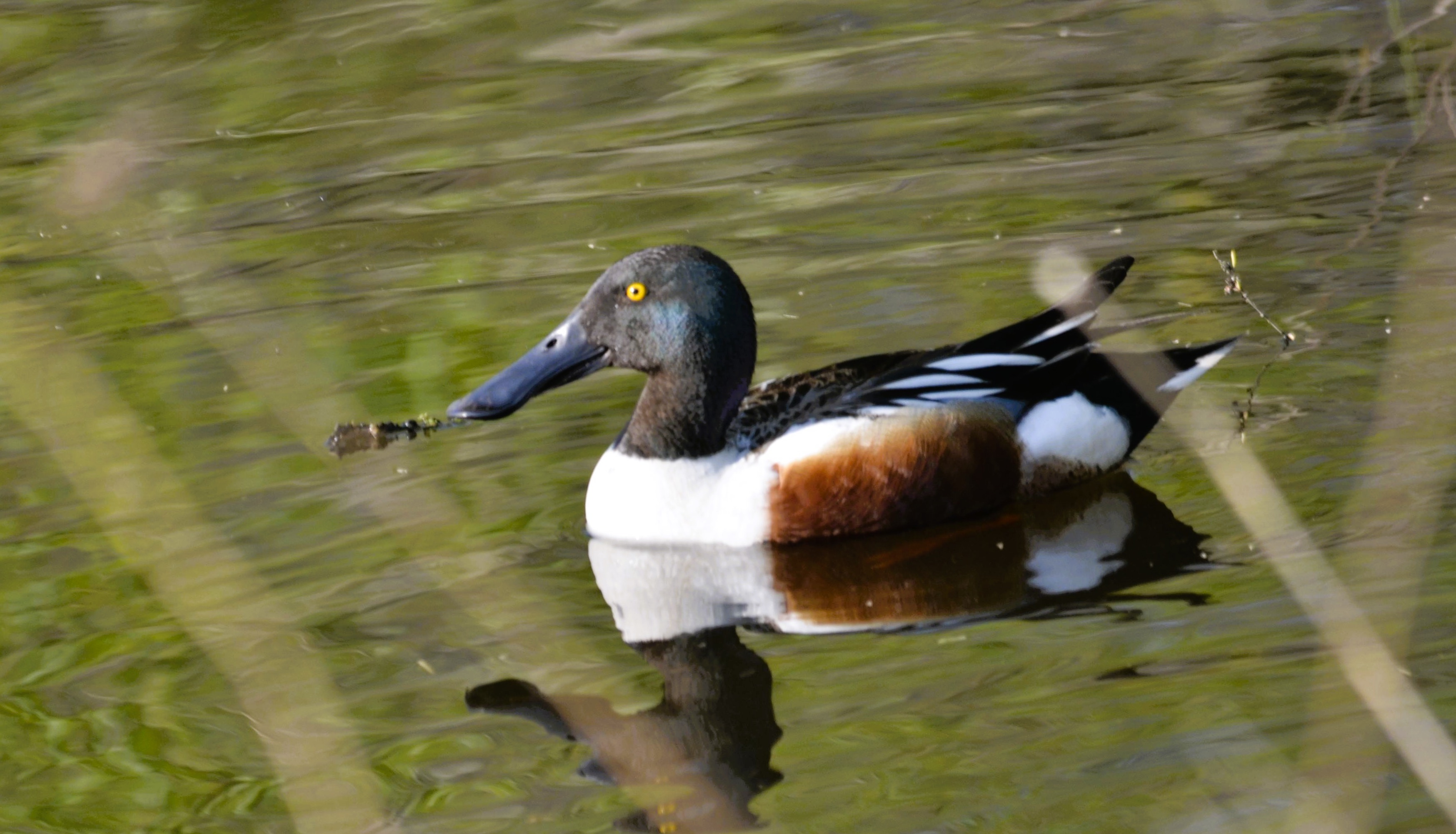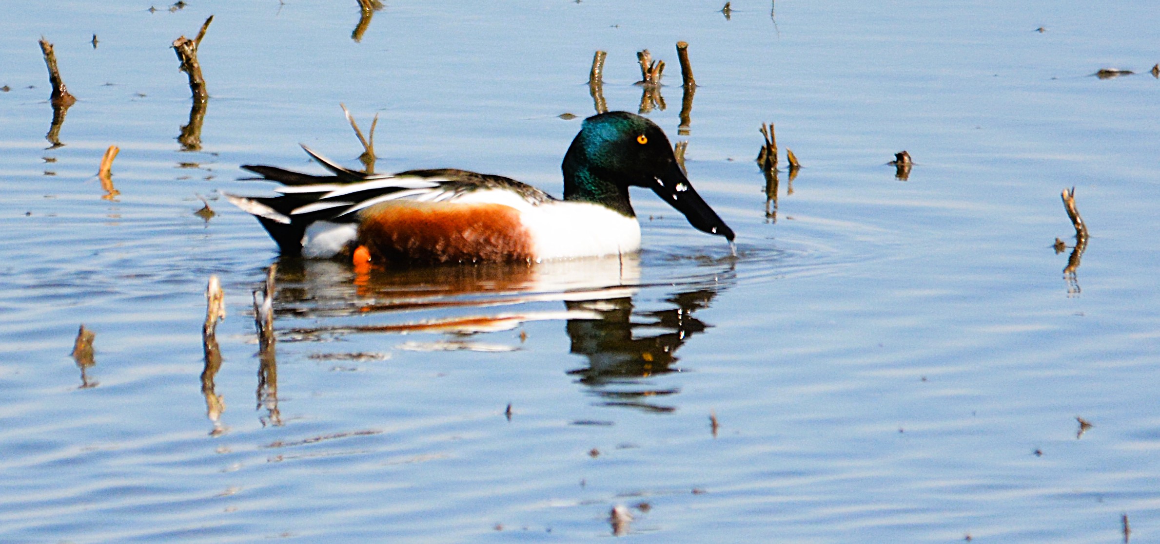 C’est le canard qui fait pousser des exclamations ! Le plumage nuptial du mâle avec ses motifs colorés est spectaculaire. On reconnaît madame branchu en raison de son anneau oculaire. Niche en hauteur. Habite les terres humides et les forêts inondées. Vole entre les arbres avec agilité.