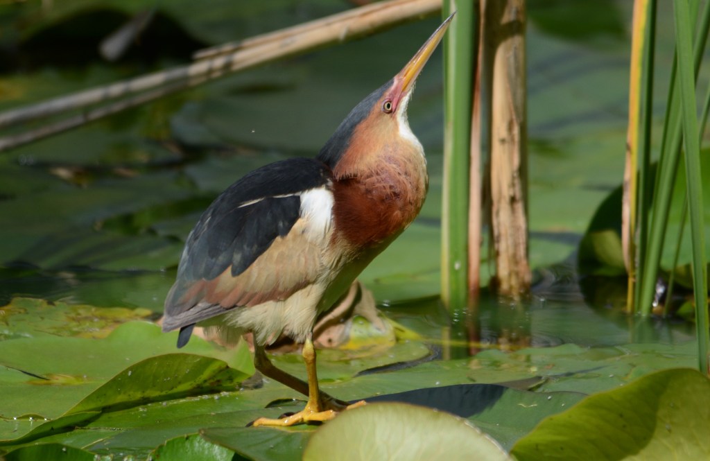 Un oiseau très discret. C’est une espèce classée menacée. Il vit et niche au milieu de longues quenouilles à l’abri des regards. Lorsqu’on a la chance de le voir, il est généralement immobile. Ses pattes sont accrochées à des quenouilles. Il scrute le fond d’un marais à la recherche d’un poisson. Malheureusement son territoire est de plus en plus restreint. Voir le petit blongio est donc un véritable cadeau. Ce fut le cas au printemps 2024 au jardin botanique de Montréal. Un souvenir impérissable.