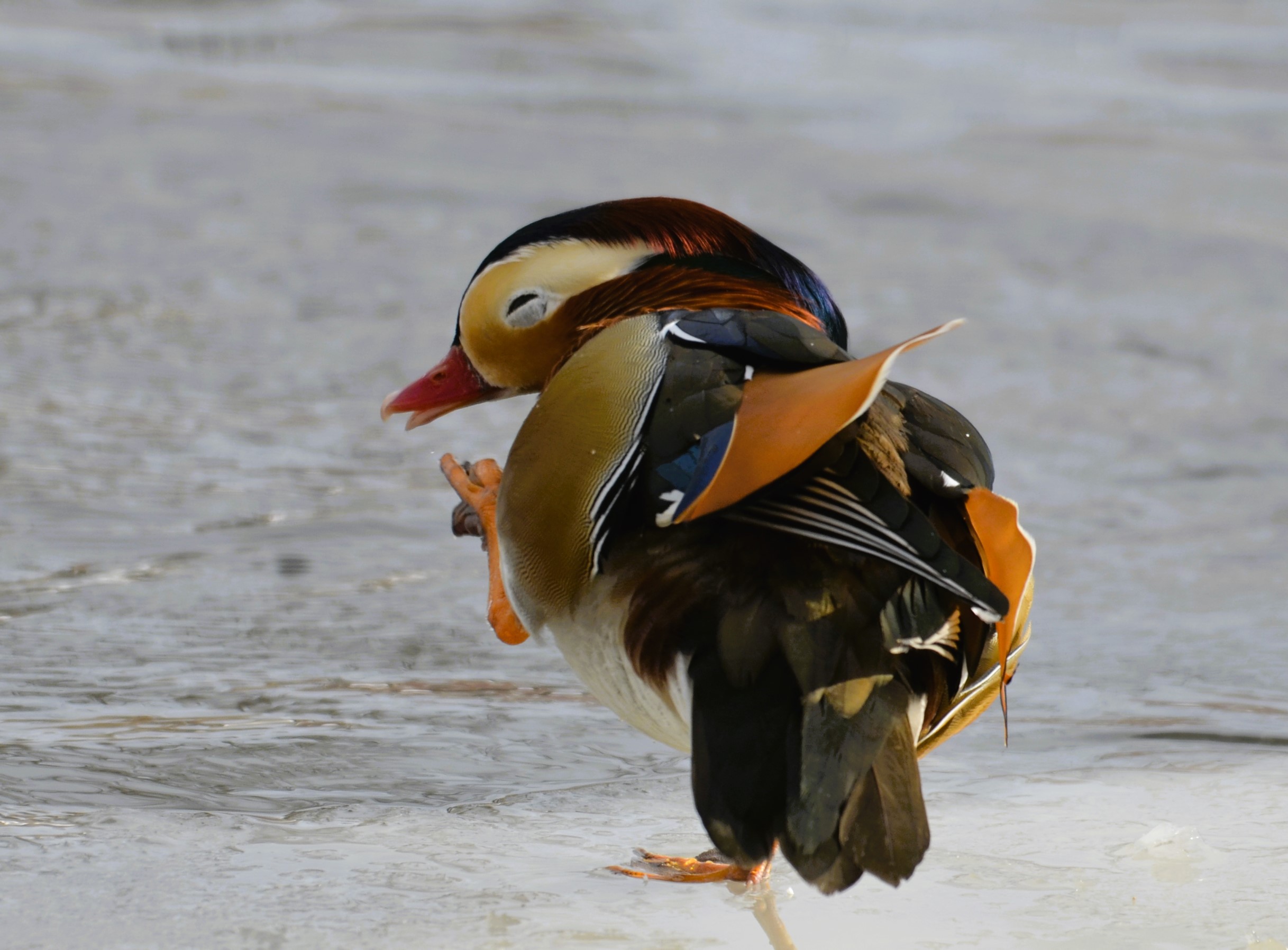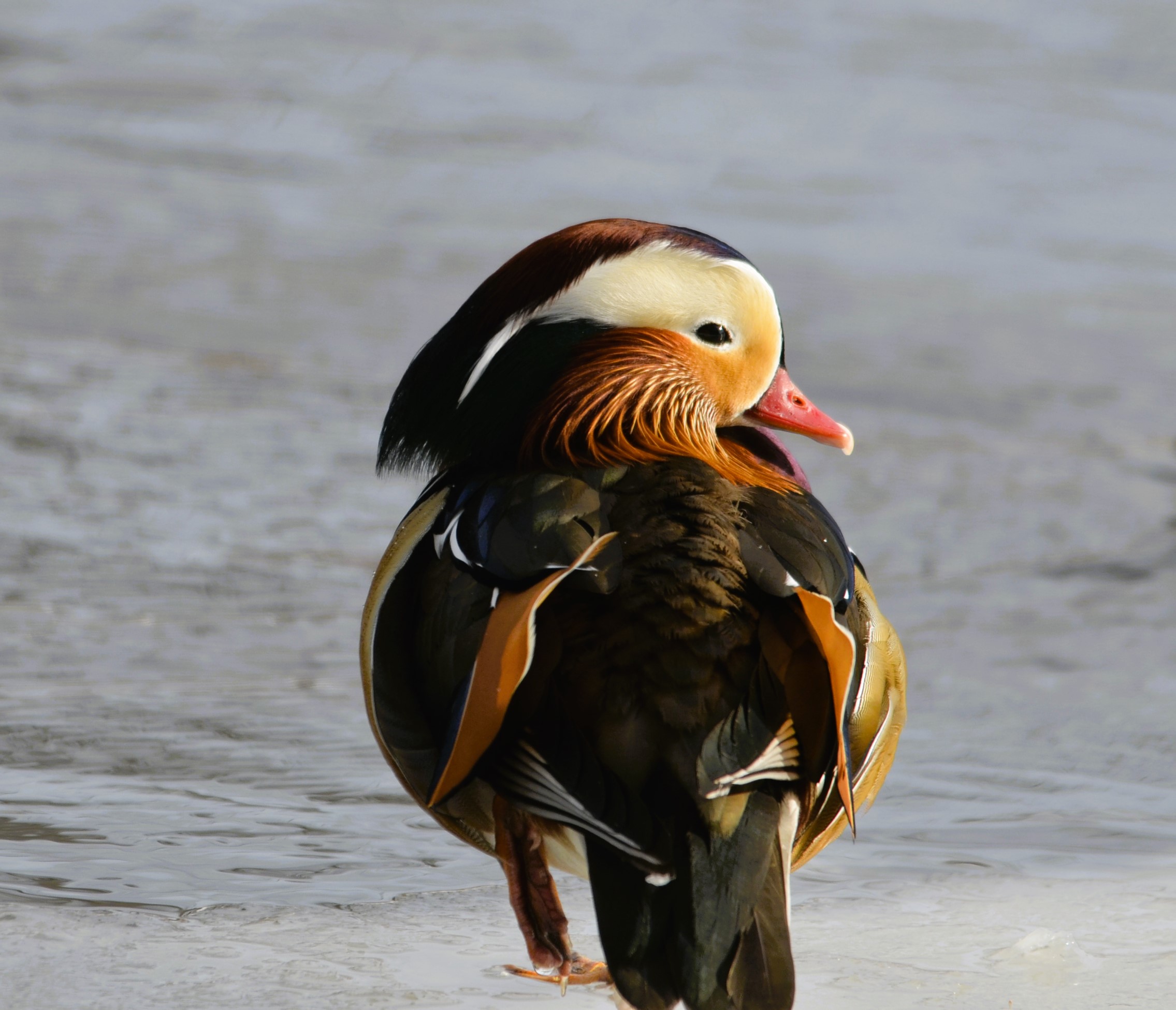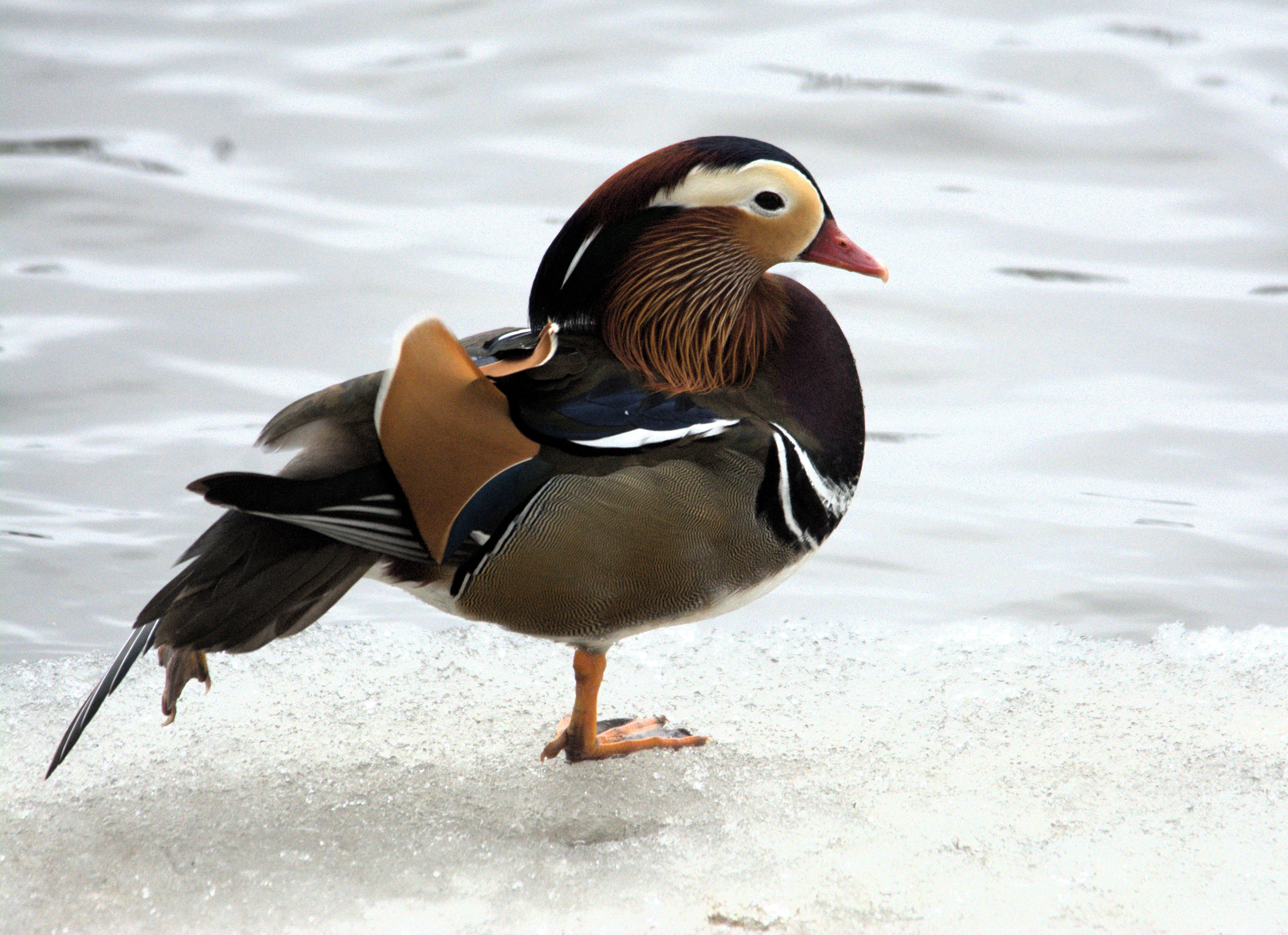 La vedette de l’hiver 2024 à Boisbriand. Ce canard asiatique a fait courir les photographes. Il faut dire qu’il a tout pour plaire. D’ailleurs, madame Branchu s’y connaît en beau mâle. Elle ne le lâchait pas d’une semelle au milieu d’un attroupement de colverts. Le canard mandarin est un symbole de la fidélité en Asie. Il est parfois offert en cadeau à un couple de jeunes mariés en Chine et en Corée. Il vit en couple toute sa vie durant. Manifestement, le couple qui a reçu le mandarin en cadeau n’a pas tenu longtemps. Le canard s’est retrouvé dans la rivière des Milles-Îles !