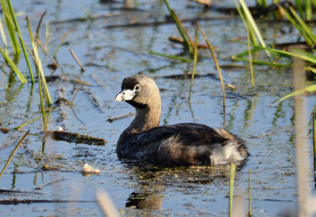 Petit corps ramassé brun gris avec un bec court et épais. L’adulte nicheur a un bec blanc entouré d’un anneau noir. Ses yeux sont noirs. Il habite les étangs et les marais à végétation émergente. Plonge pour se nourrir principalement de poissons.