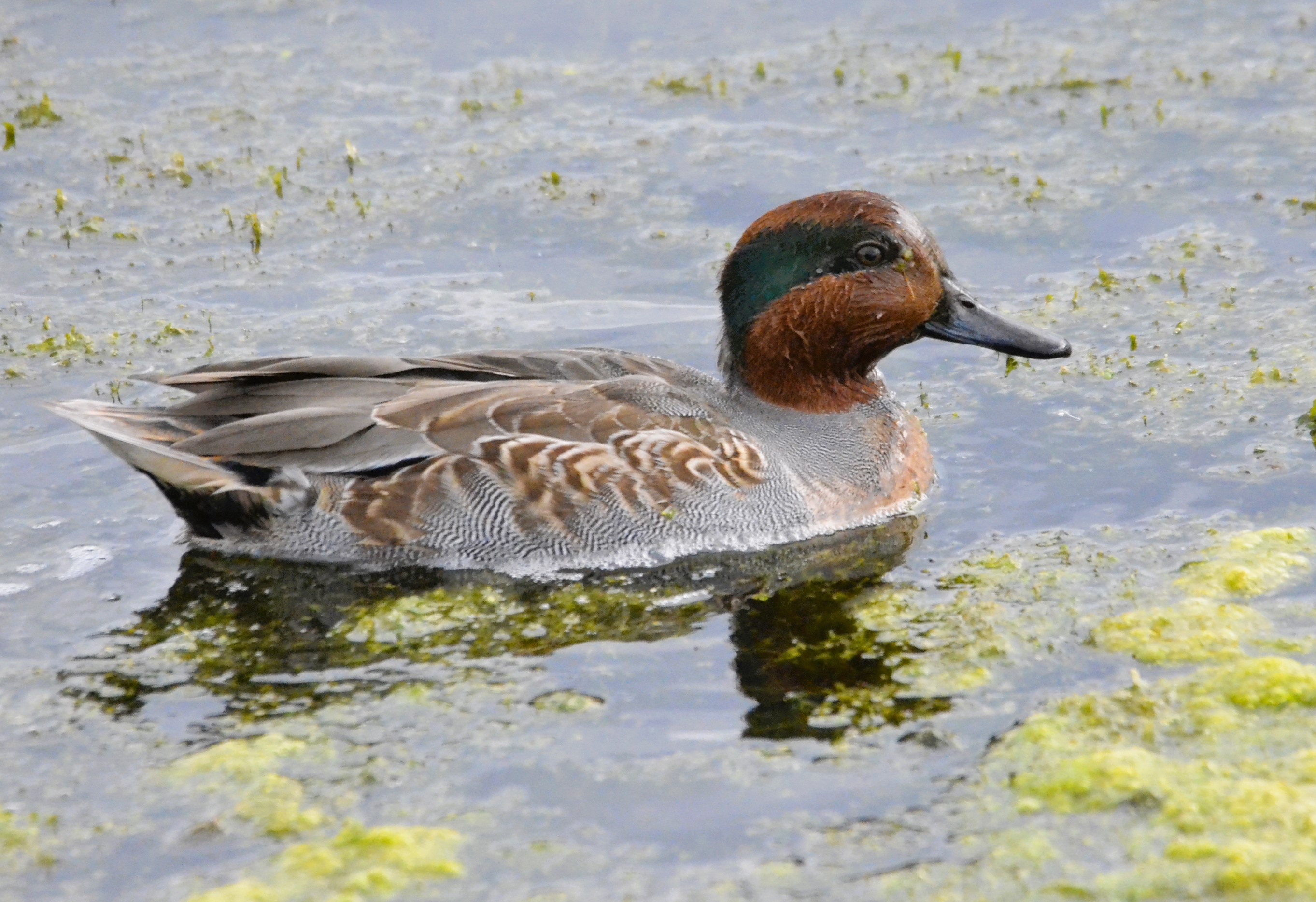 Un petit canard à petit bec fin. Le mâle a la tête brune avec une large rayure verte derrière l’oeil et une poitrine couleur crème. La femelle est brune.Pour se nourrir il barbote et bascule le corps pour atteindre la végétation aquatique submergée. Il se nourrit aussi en marchant à proximité des vasières.