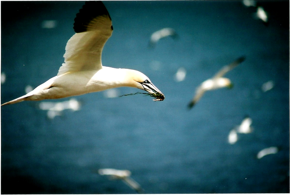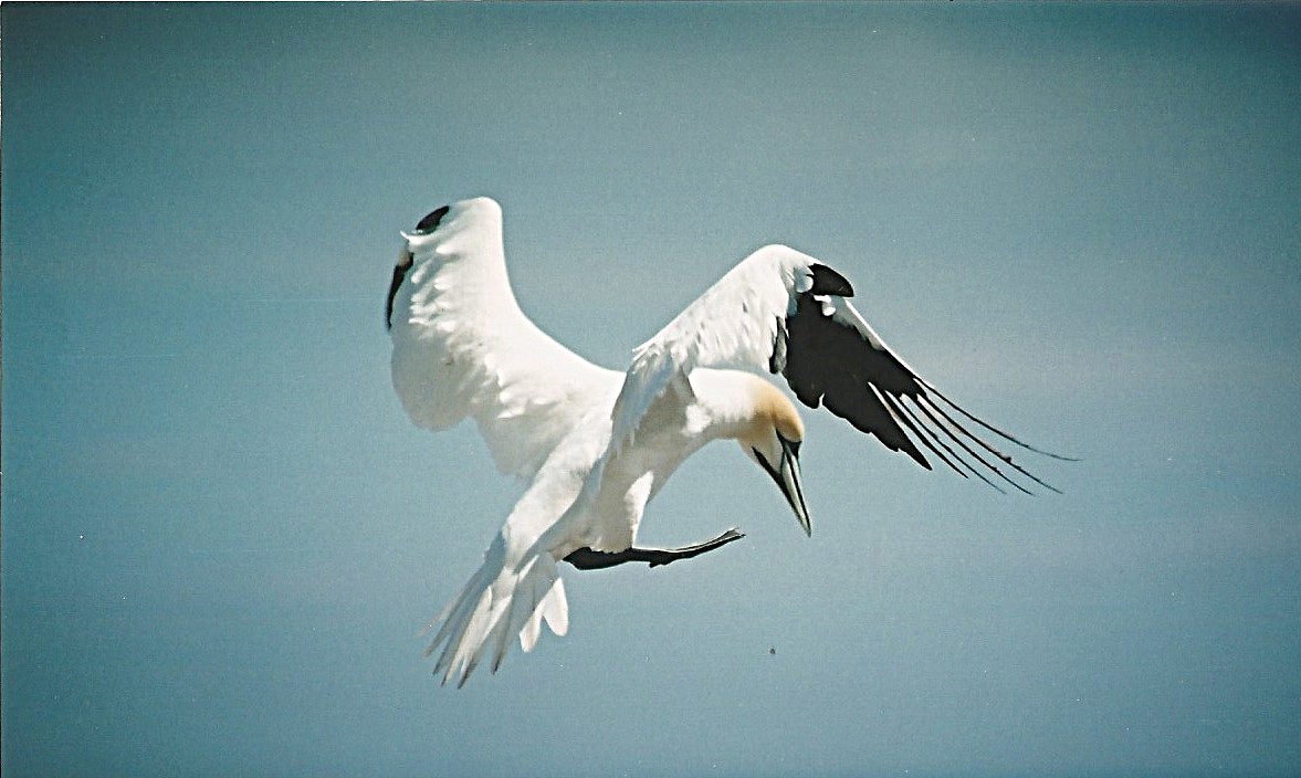 « Le fou de Bassan modère soudain sa vitesse, ferme à moitié ses ailes… » — Anne Hébert, Les Fous de Bassan (1982).