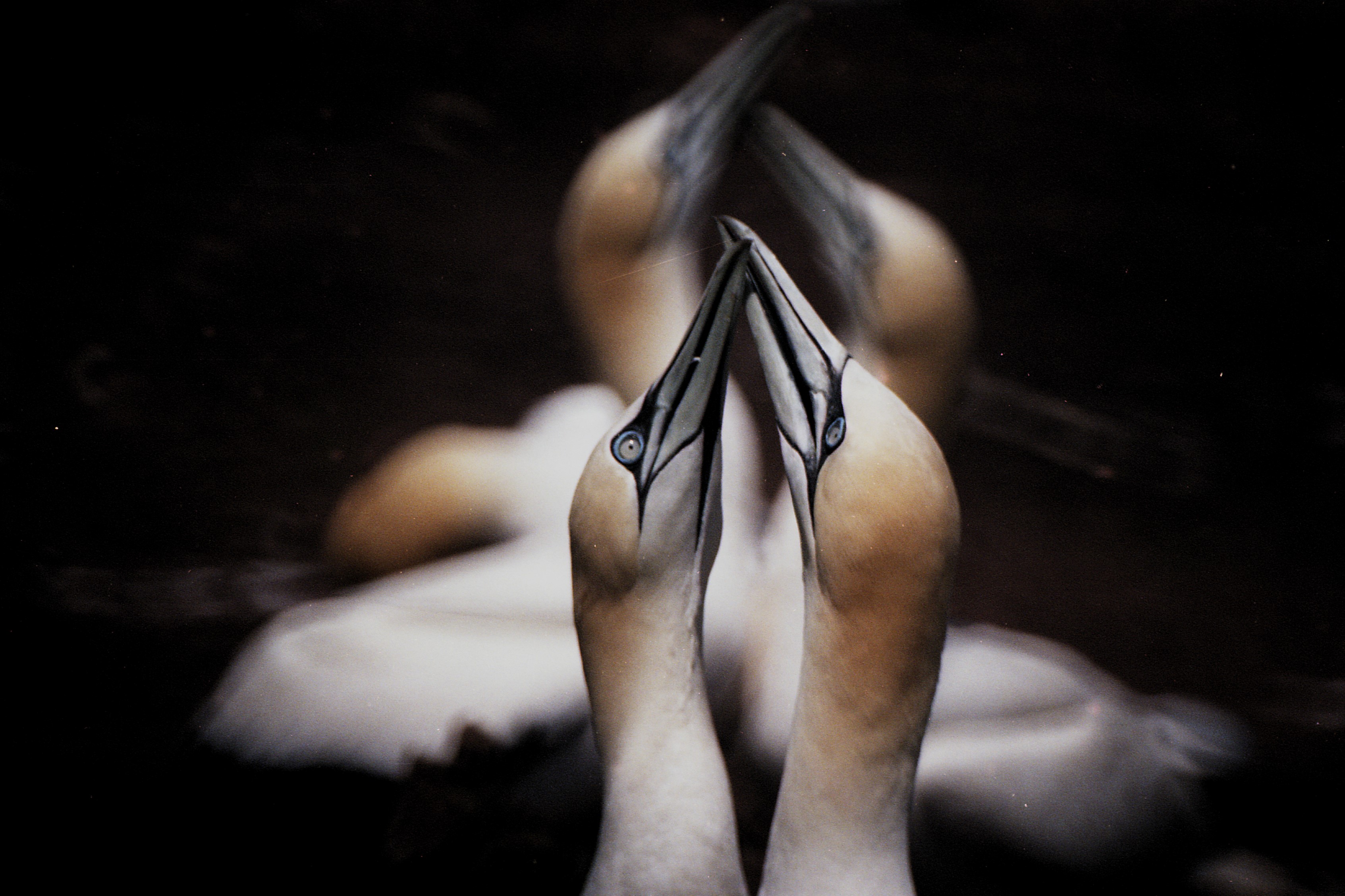 Dire que cet oiseau est territorial est en-deçà de la vérité. Il suffit de l’observer sur l‘île Bonaventure qui compte une des plus grandes colonie au monde. L’espace réservé à chaque nid est tellement petit que les chicanes entre voisins sont légion. Et souvent, elles se terminent dans le sang. Il ne fait pas bon de se frotter à un fou de bassan de mauvaise humeur. Et franchement on a l’impression qu’il est toujours de mauvaise humeur !