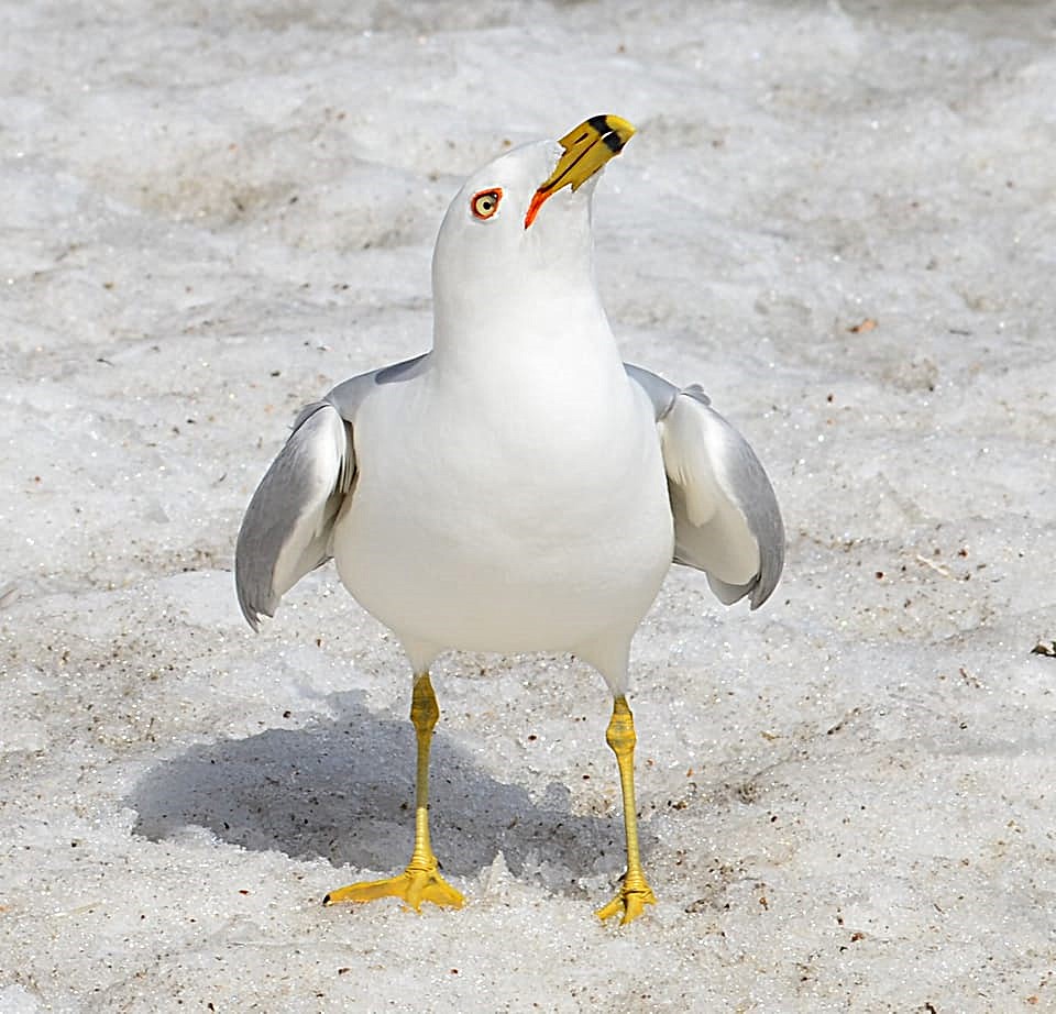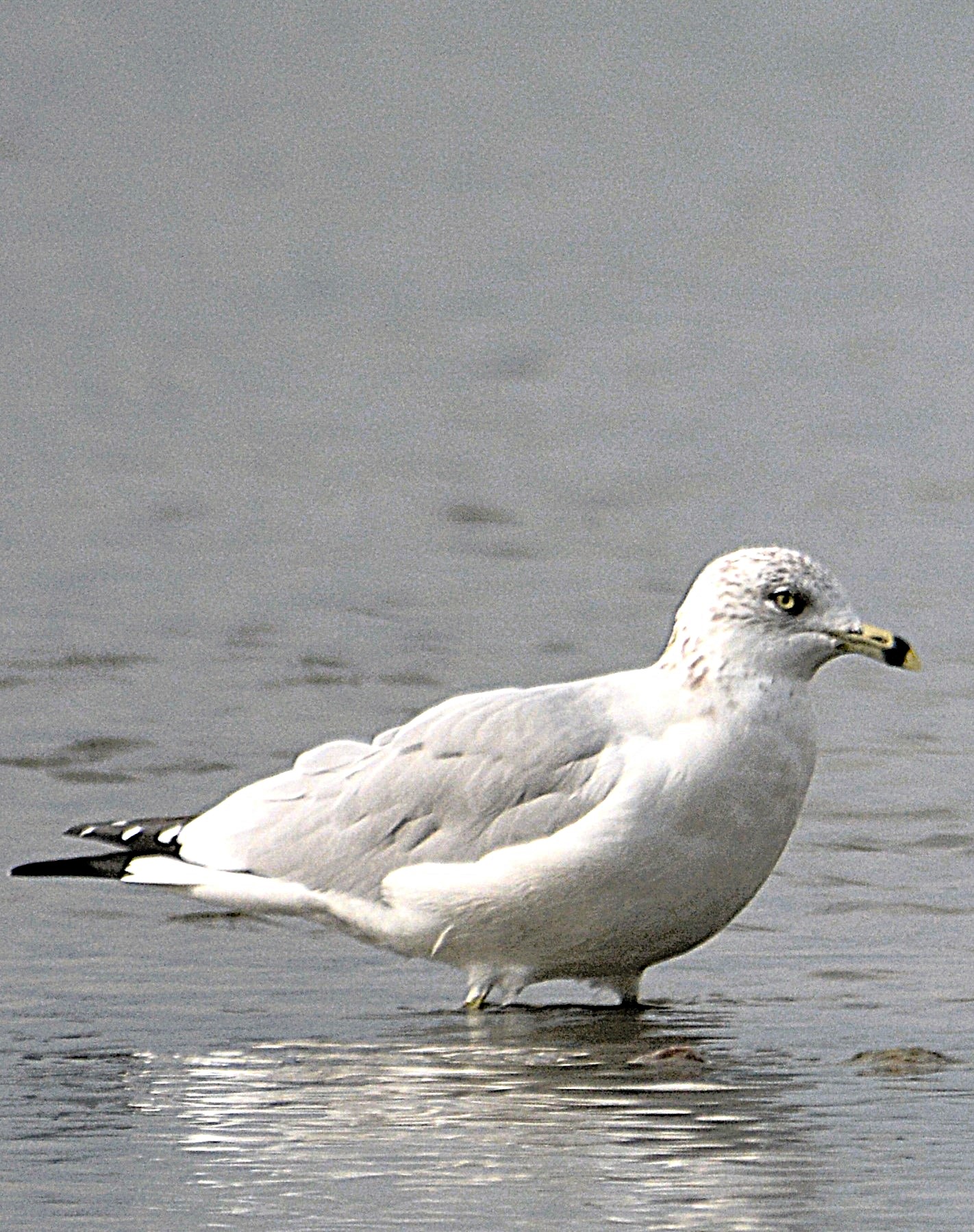 Le plus gros goéland du monde qu’on appelle aussi le goéland à manteau noir. L’adulte a un dos foncé qui constrate avec le plumage blanc du reste du corps. Bec épais. Tête très blanche. On le décrit comme intrépide et agressif. Il s’observe surtout sur les sites côtiers du Nord-Est des États-Unis, dans les Grands Lacs et en Europe. La photo a été prise sur la Côte-Nord.
