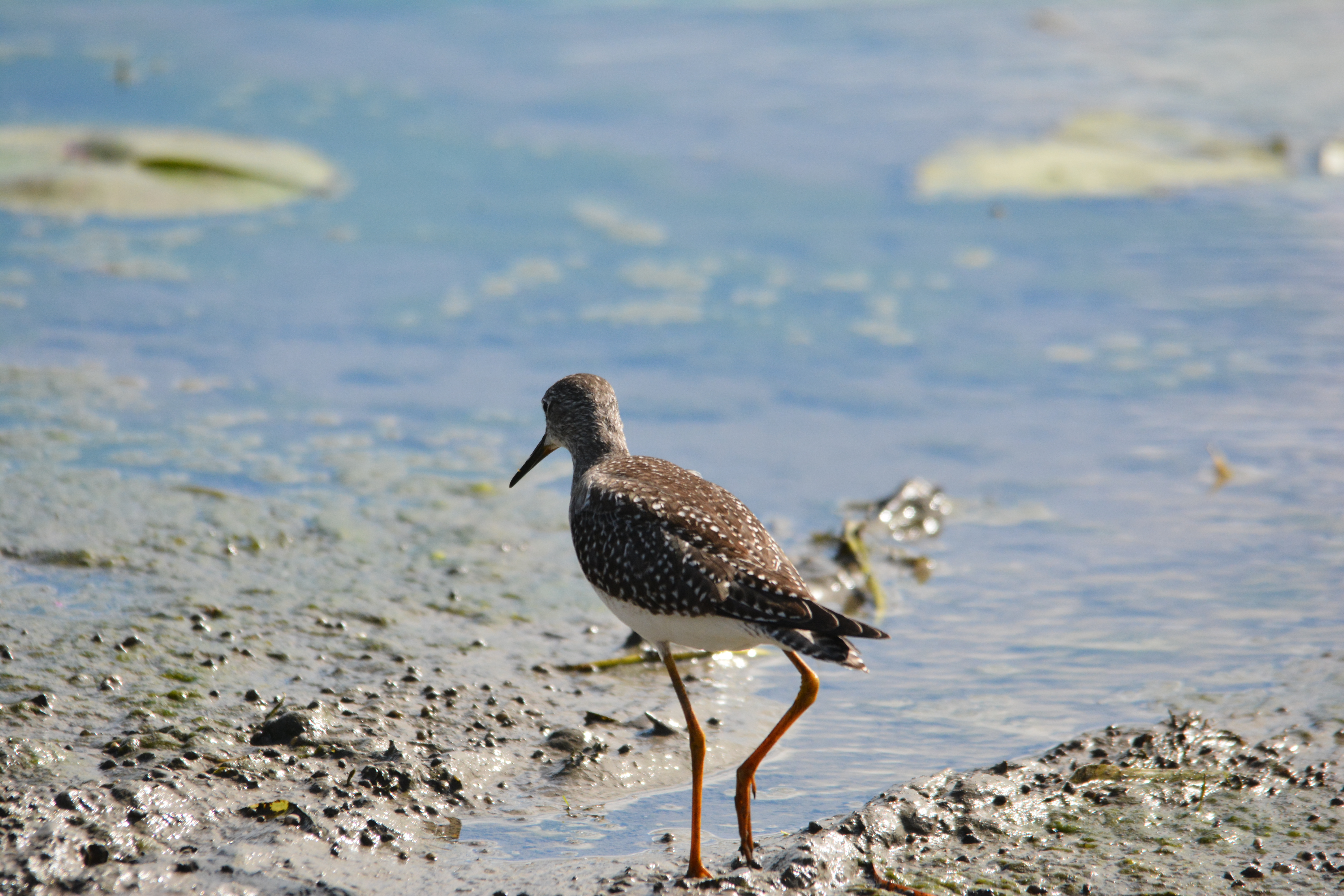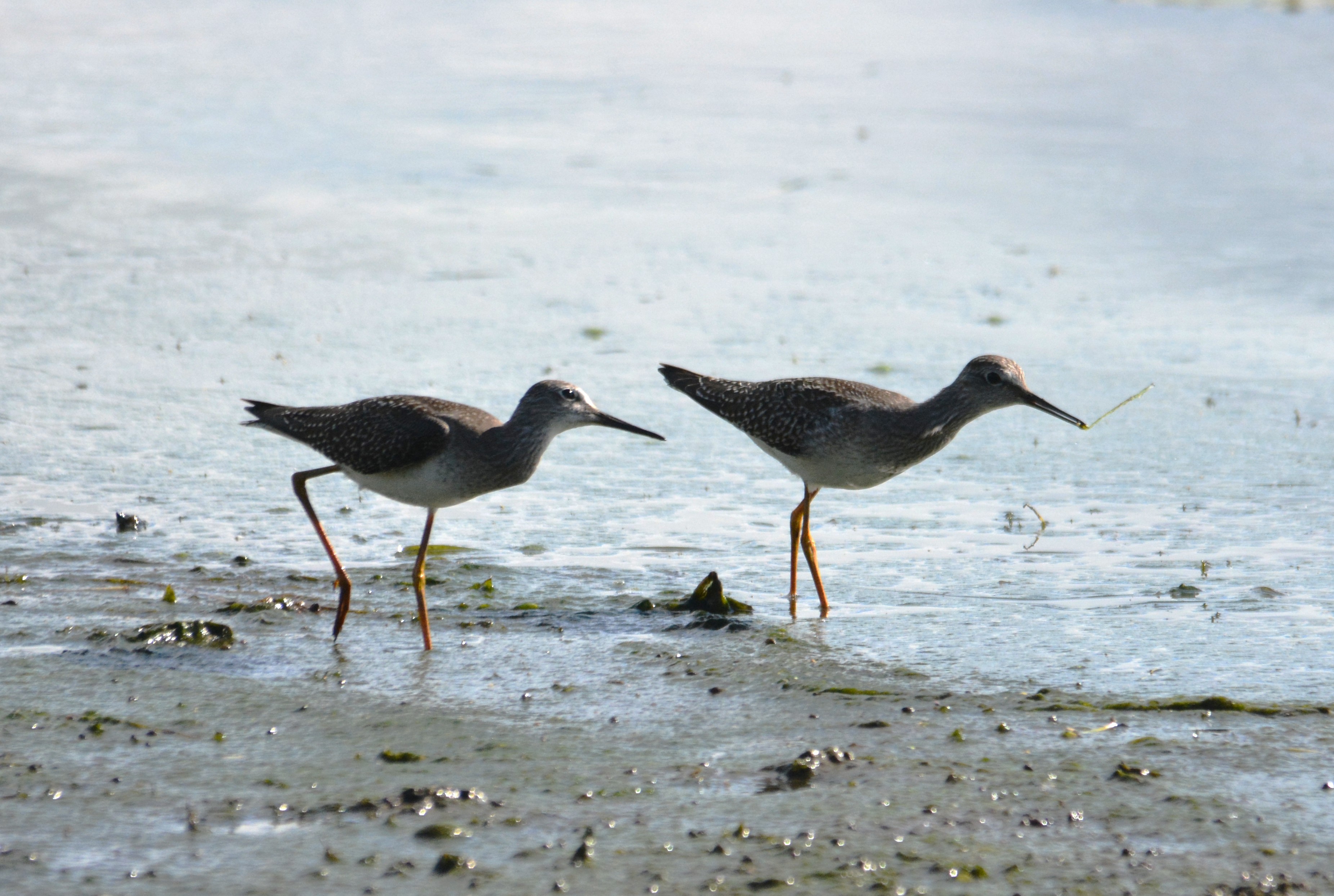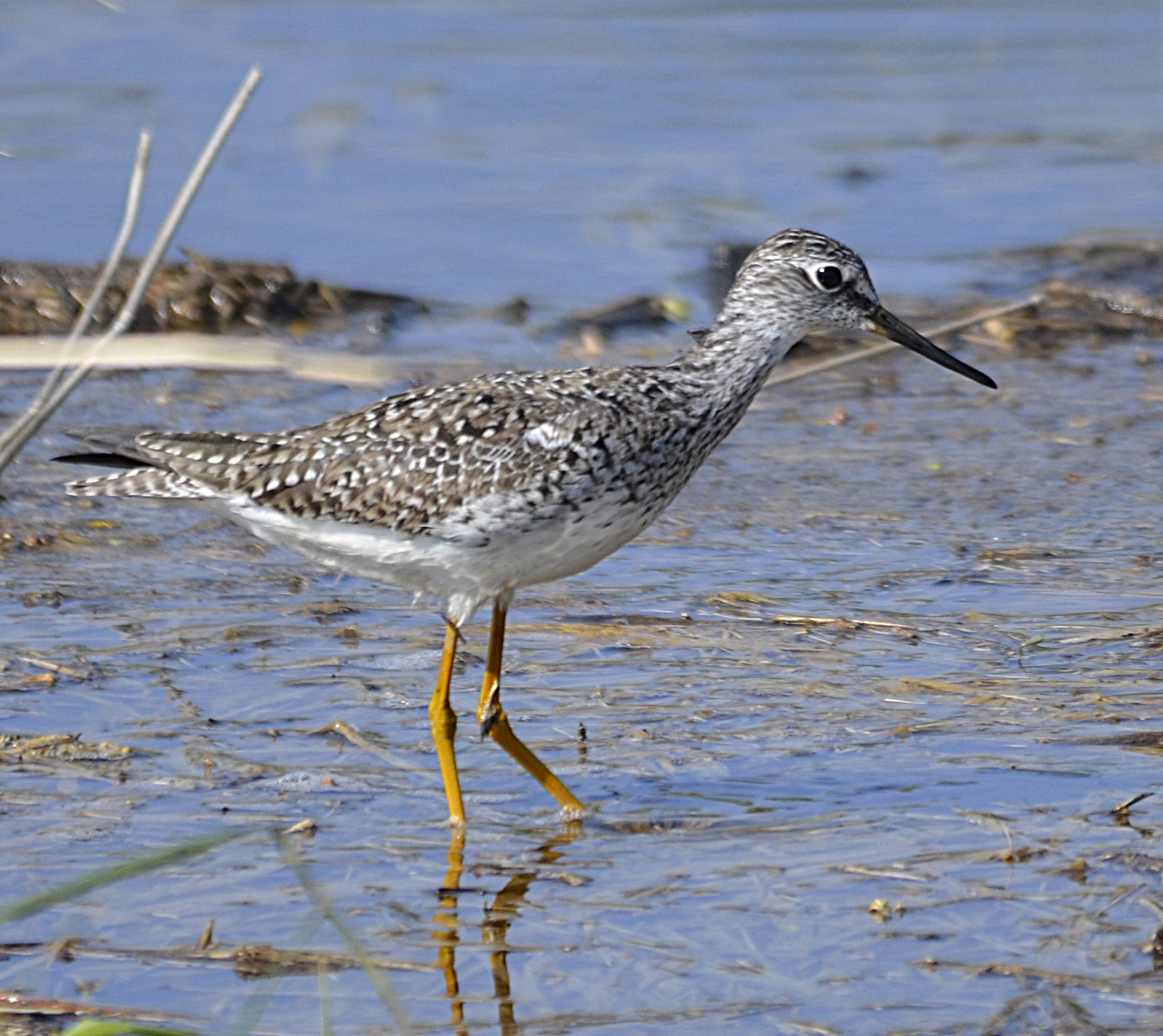 Un oiseau de rivage moyen à grand à pattes jaune vif. Plumage quasi identique au petit chevalier. Son bec est cependant plus long que la tête et légèrement relevé vers le haut. Son cou est aussi plus long que le petit chevalier. Il se nourrit dans les vasières et les zones d’eau peu profondes. Il fait de grandes enjambées à la recherche d’invertébrés.