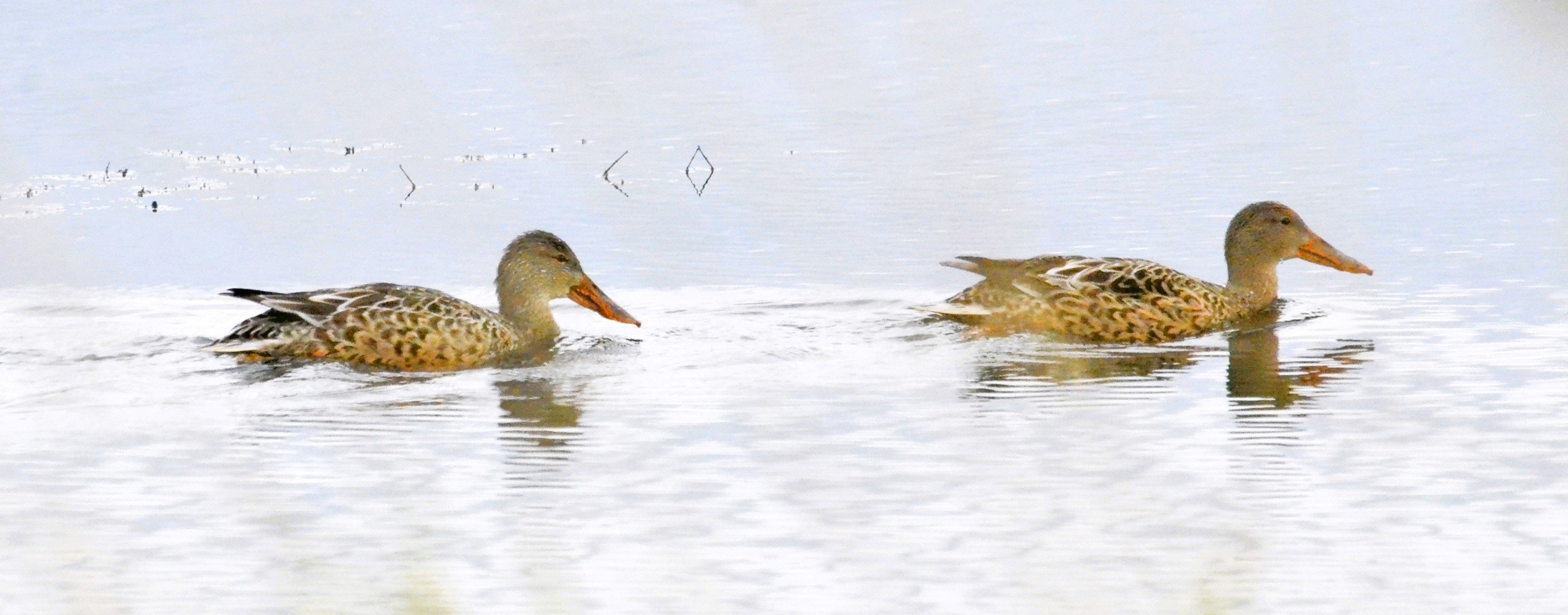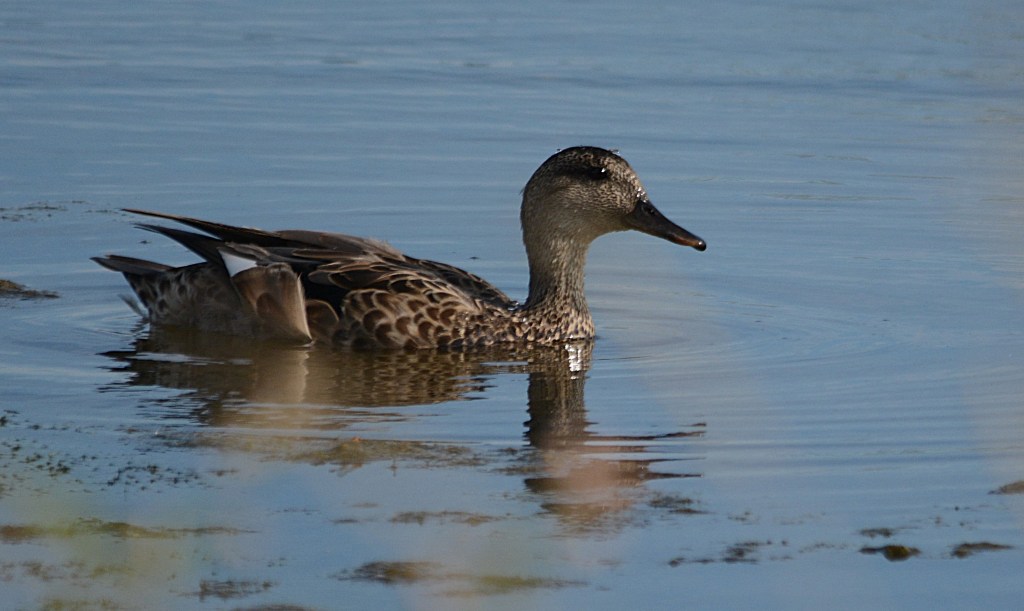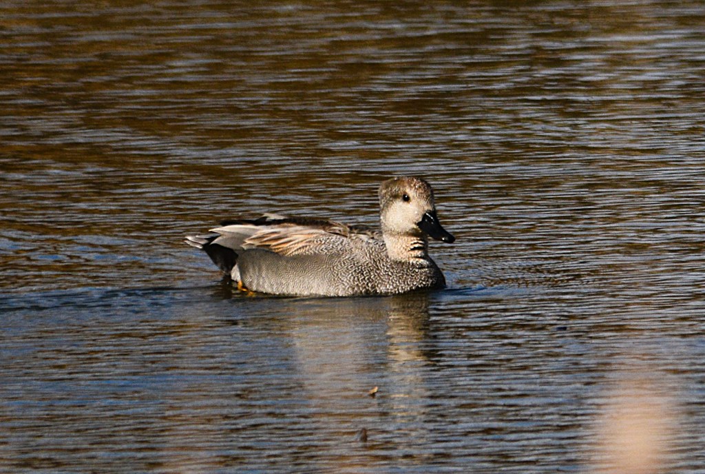 Même taille que le colvert, mais un bec plus fin. Le mâle est tout gris avec un petit miroir blanc sur l’aile et le bec noir. La femelle ressemble au canard colvert. Elle a un miroir blanc et une ligne orange le long de la bordure du bec.