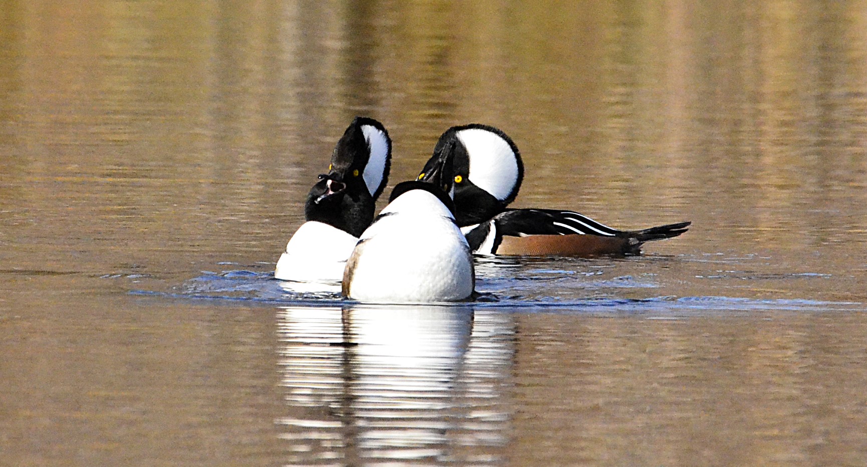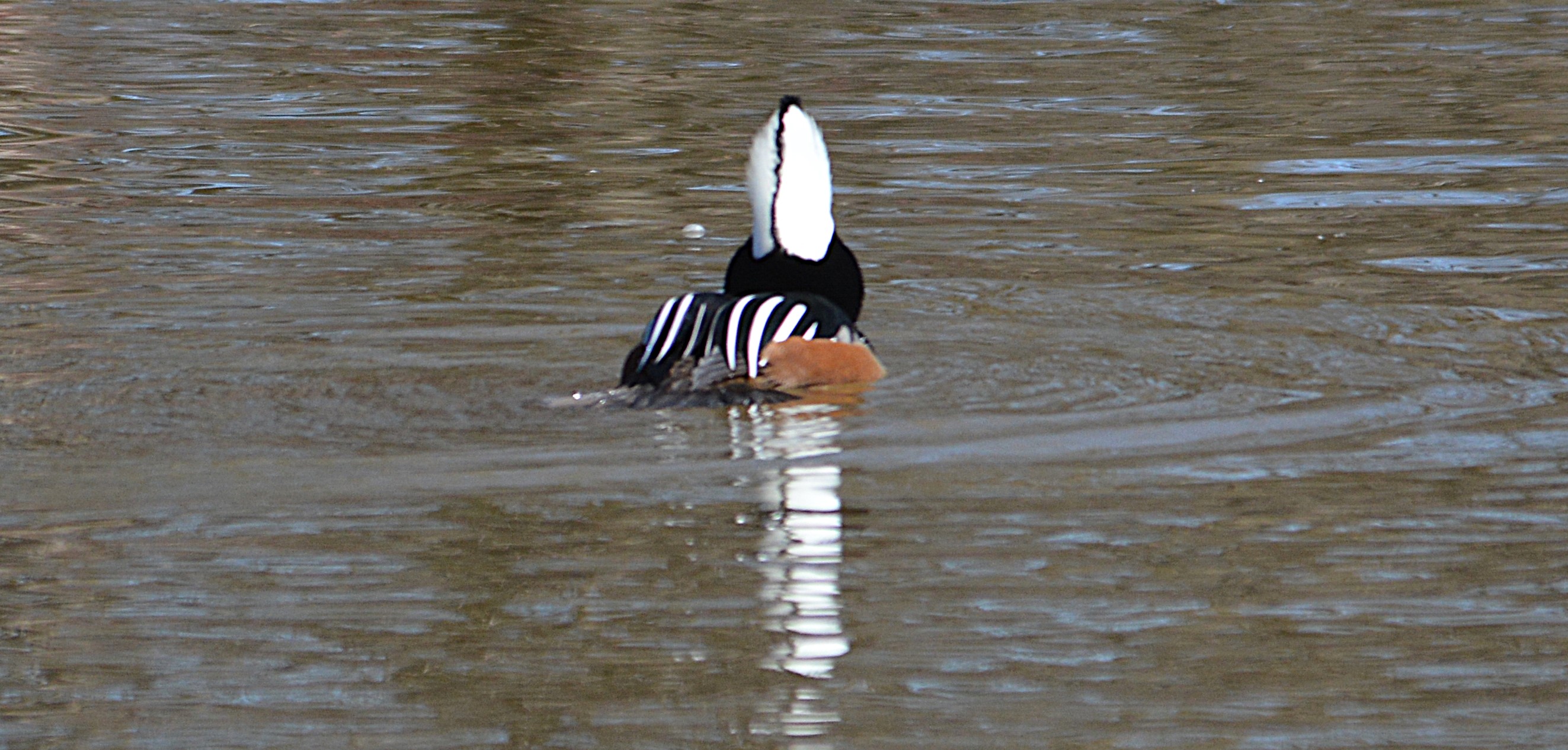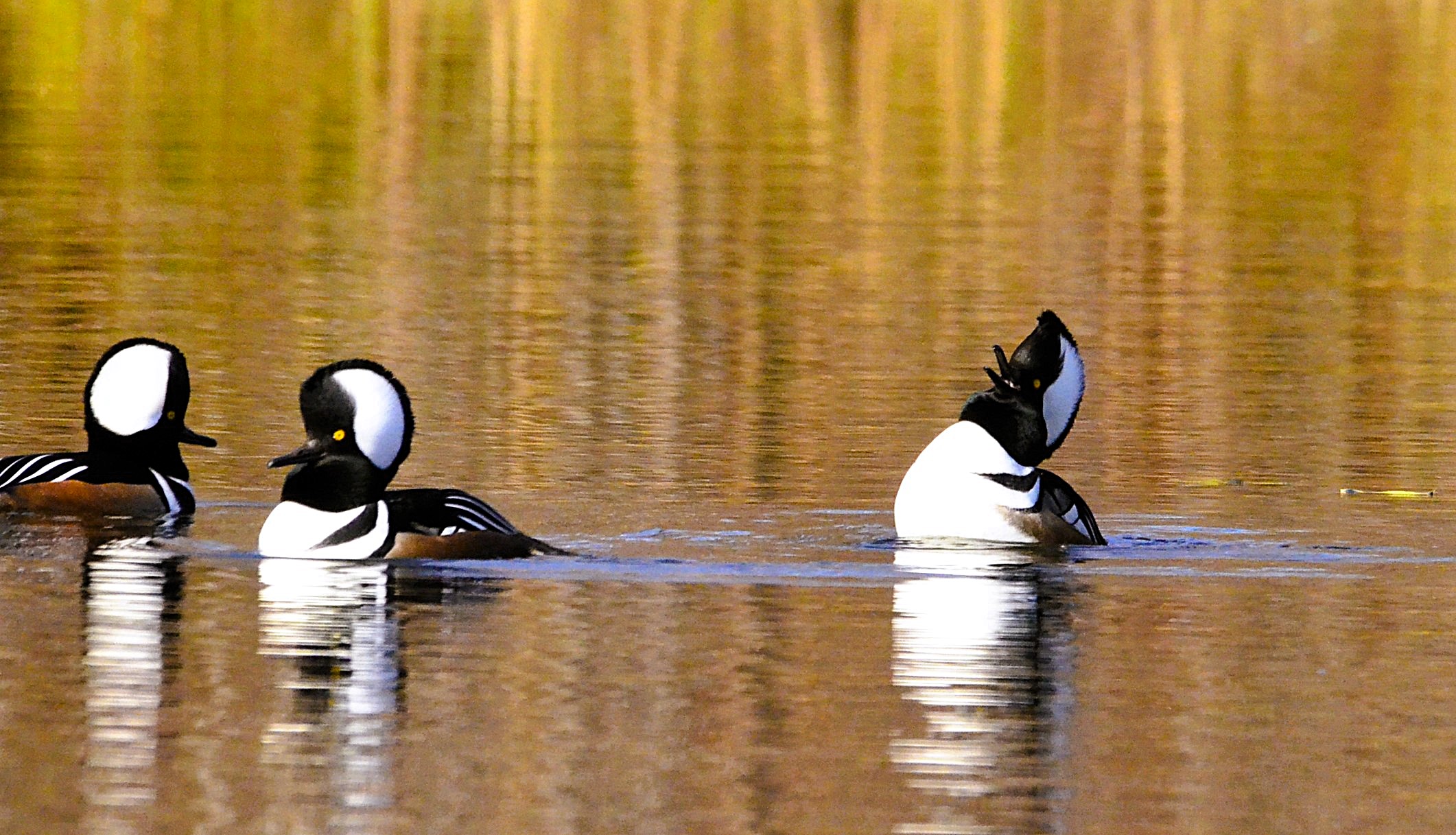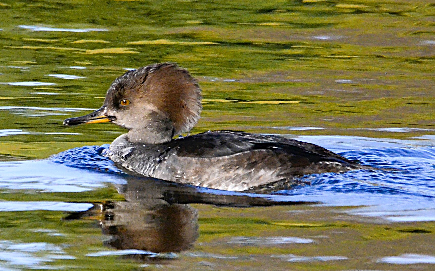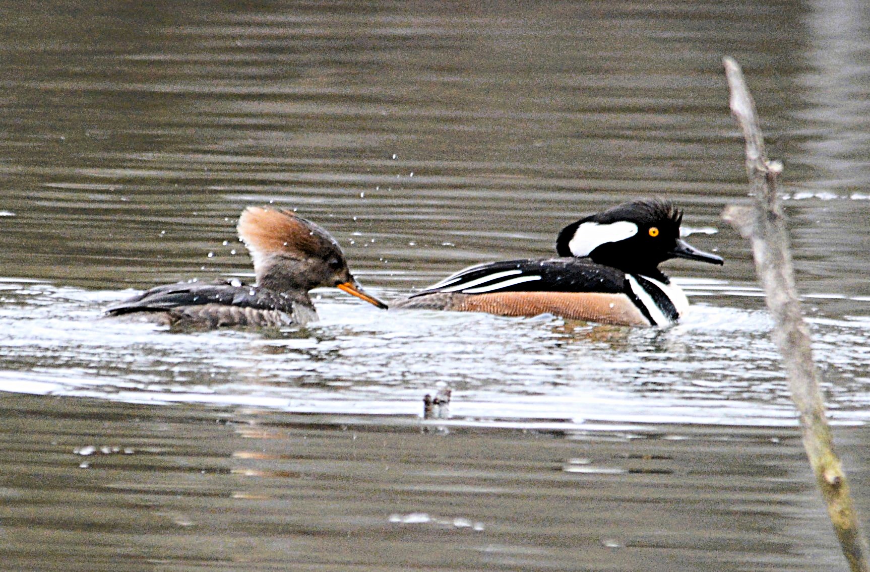 Le mâle nicheur a une huppe noire et blanche très visible. La femelle est toute brune avec une fine bande orange le long du bras du bec. Il niche dans des cavités. On le voit généralement dans des plans d’eau calmes comme des mares, des rivières et des lacs. Il peut apparaître dans des endroits inattendus. L’automne dernier en novembre, un important groupe avait choisi de prendre une longue pause dans un étang du parc Angrignon à Montréal. C’était la période de la parade nuptiale du harle couronné, alors que les mâles agitent leur tête et déploient leur crête pour impressionner les femelles. Je me rappelle aussi d’un couple tôt au printemps qui avait passé quelques jours à découvrir le ruisseau de la brasserie à Gatineau, secteur Hull, avant de quitter les lieux. Ce sont deux périodes où ils est possible de les voir de relativement près dans des parcs et des étangs.