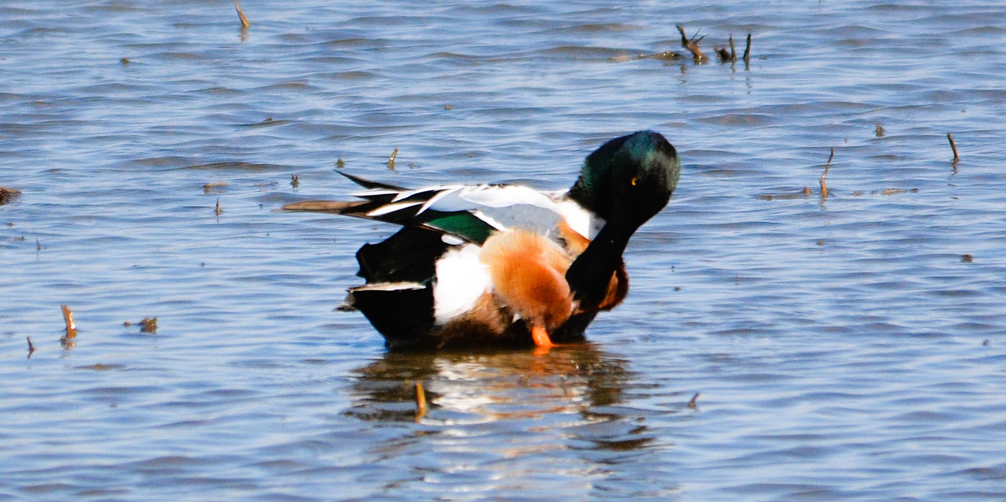 Canard de taille moyenne, plus petit qu’un colvert. On le reconnaît en raison de son énorme bec en cuiller. Le mâle nicheur a la tête vert foncé et la poitine blanche avec flancs et ventre marron. La femelle est d’un brun chamois avec un gros bec. Se nourrit en fouillant dans l’eau.