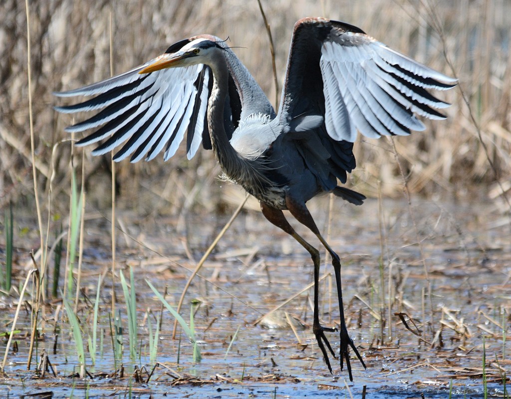 Il est grand et maigre avec un cou très long tout comme les pattes. Bleu-gris avec un bec en forme de poignard, il se nourrit en eau peu profonde. On se demande toujours comment il fait pour avaler de grosses proies et surtout, pour en redemander ! Cet oiseau n’a manifestement aucun problème de digestion !