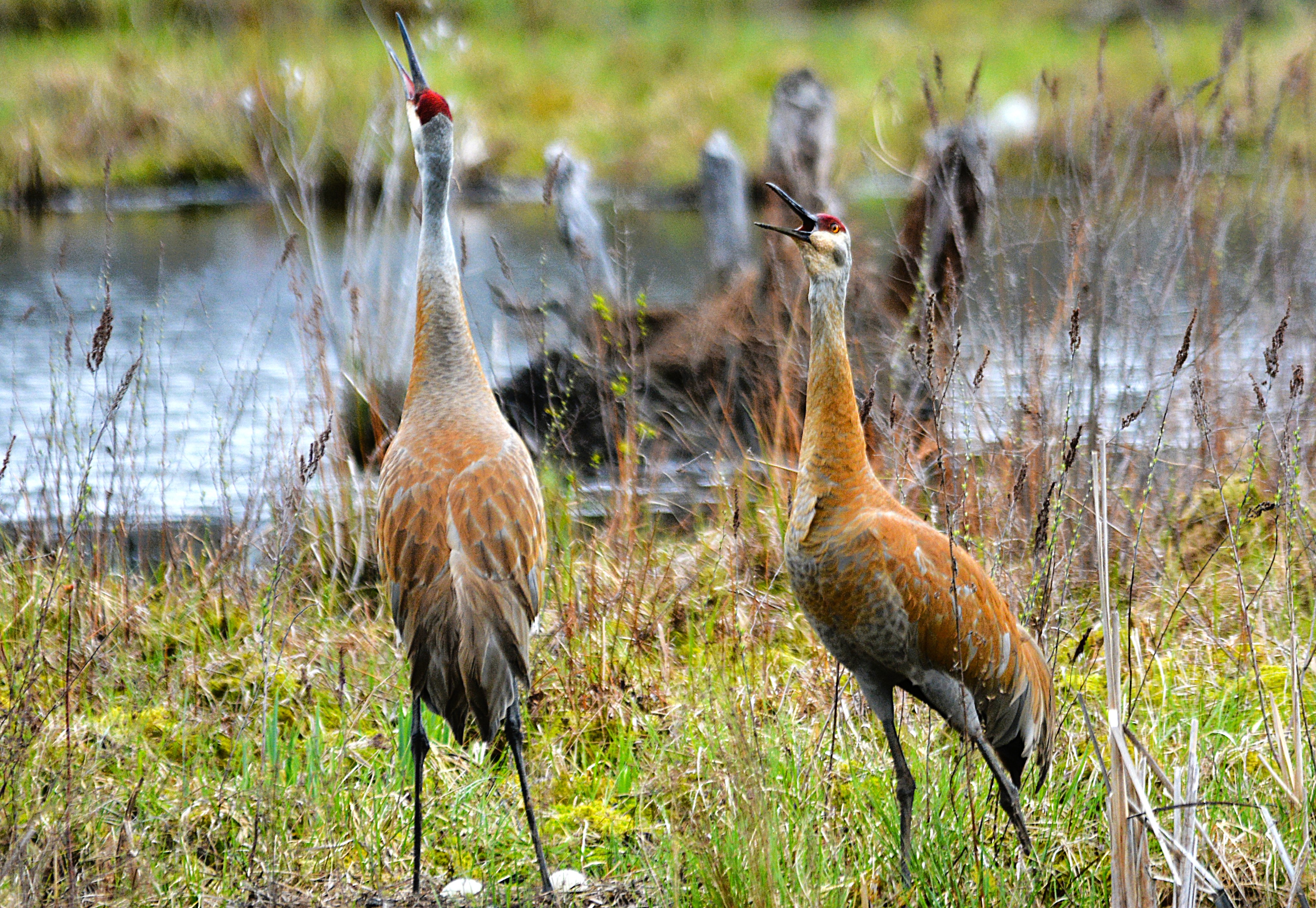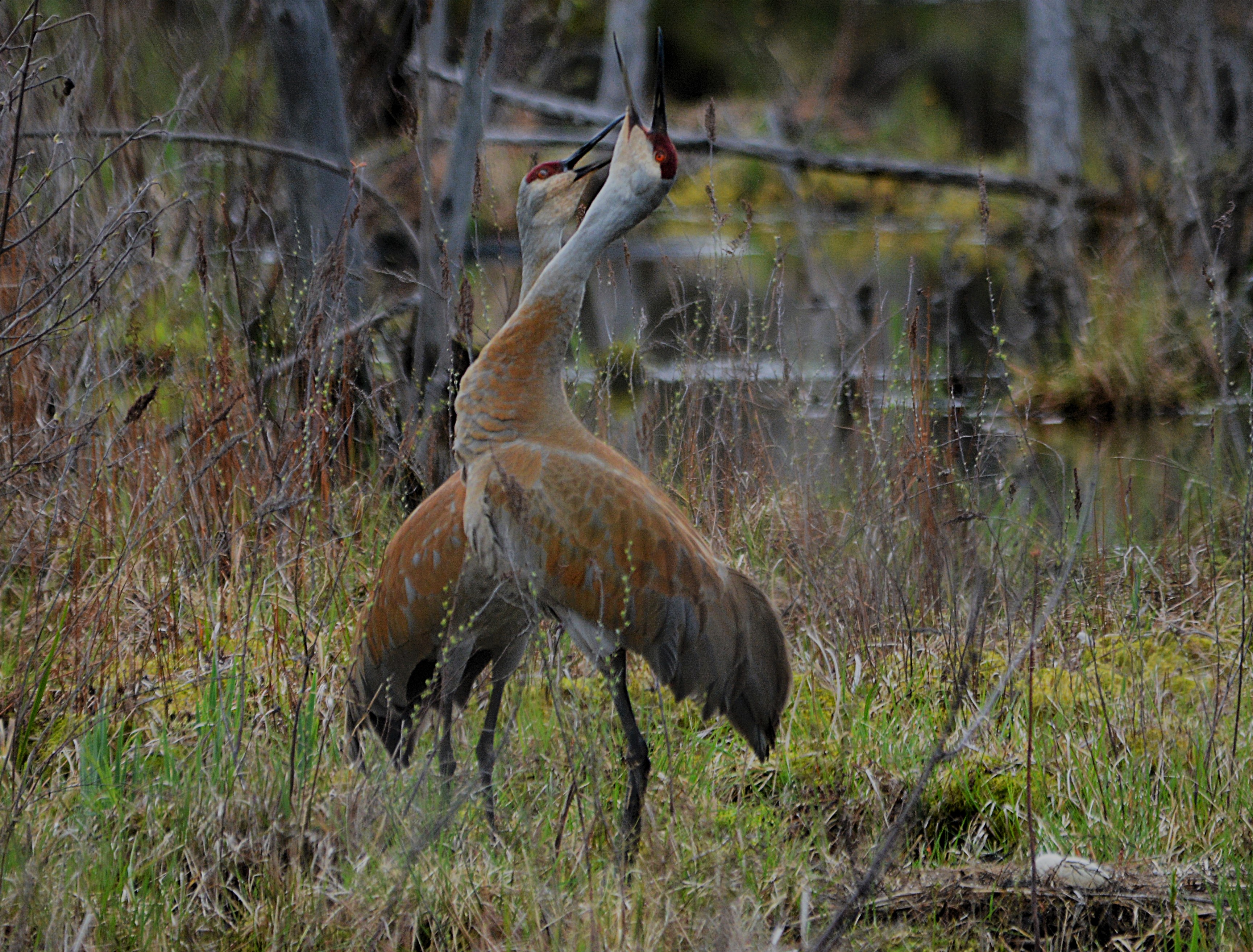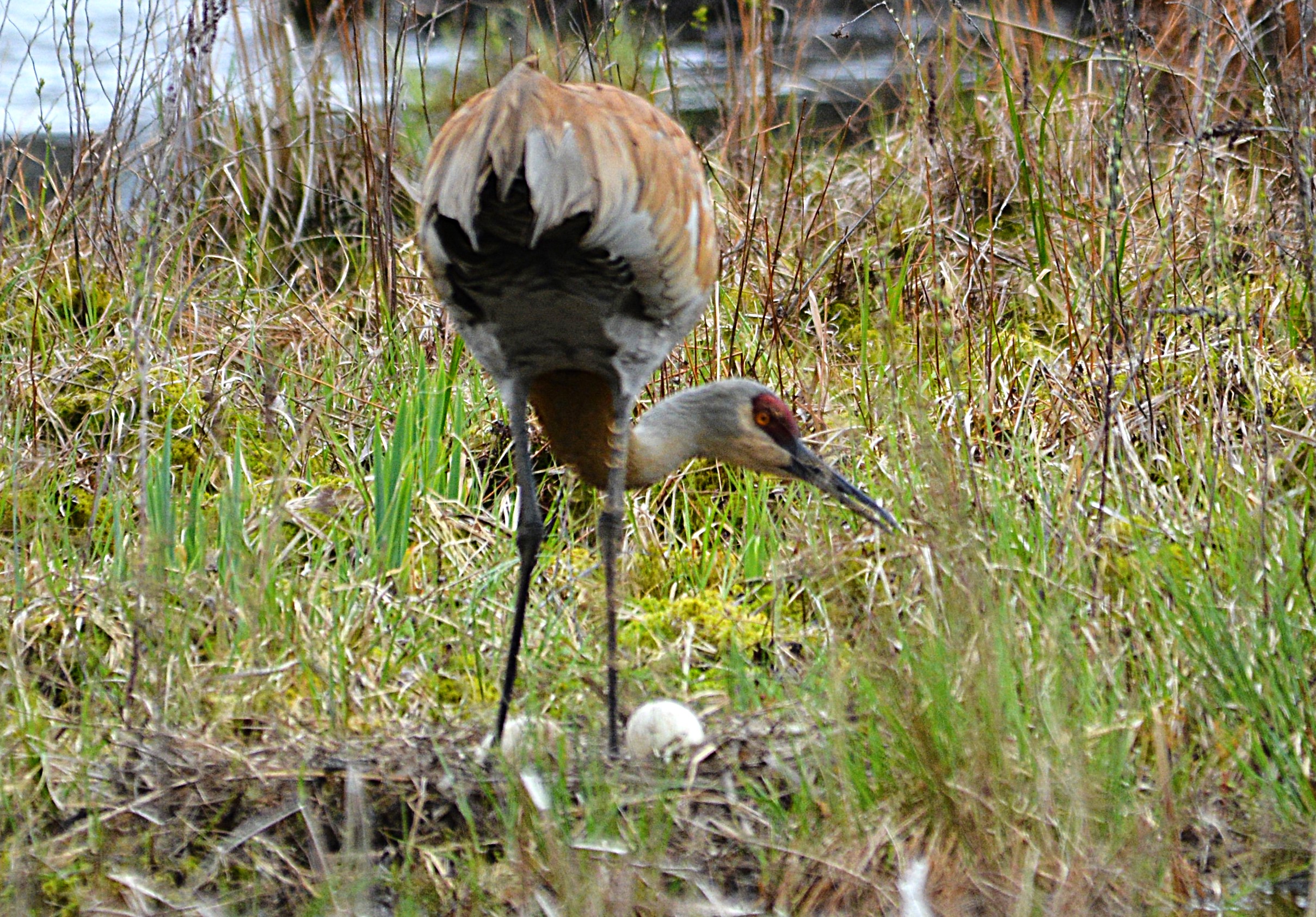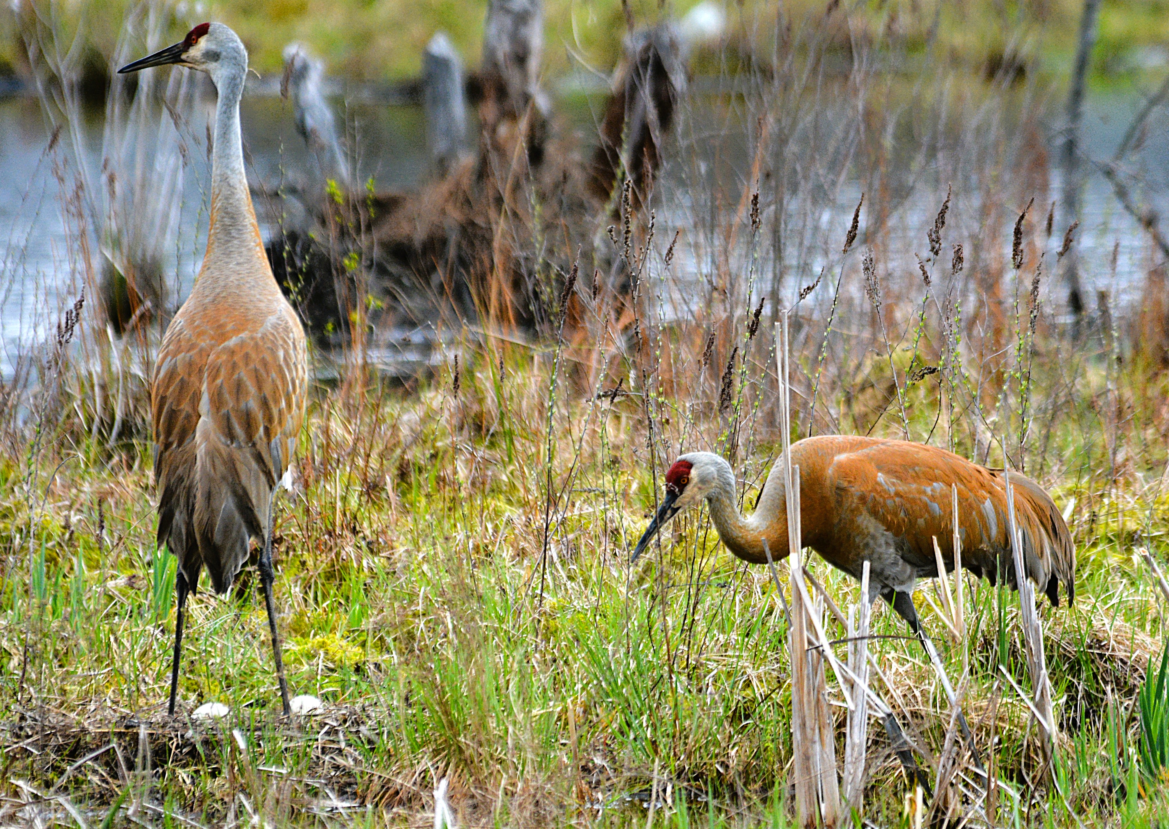 Oiseau très élancé sensiblement de même forme et de même taille que le grand héron. Le corps est principalement gris et l’adulte a une tache rouge vif sur le front de même que les joues blanches. Le bec est très fort. Les pattes sont longues et grises. Les deux sexes sont semblables. La grue du Canada vit près des marais et au bord de l’eau.