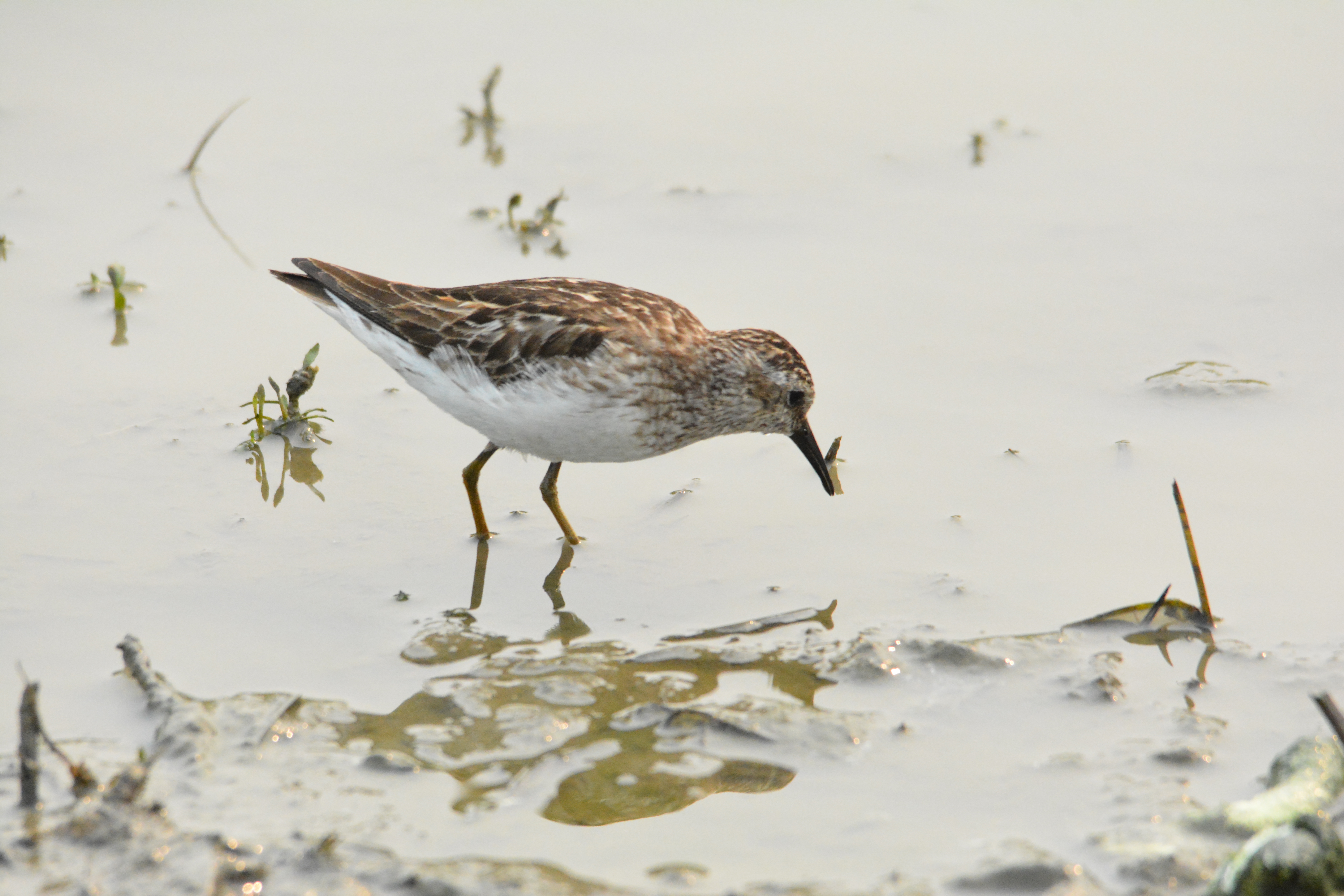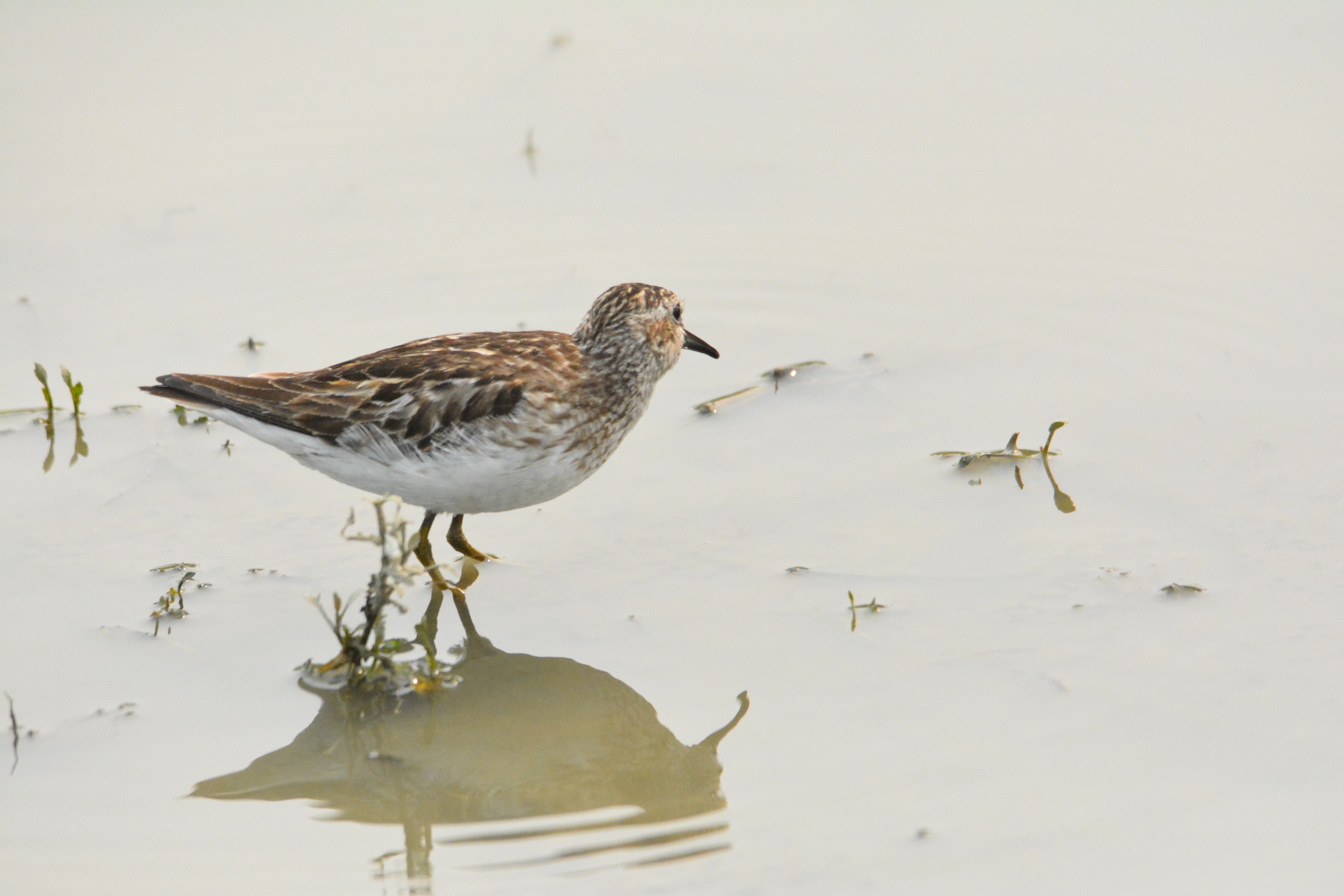 Les pattes peuvent être boueuses et paraître plus foncées, mais leur couleur vert-jaune constitue un caractère fiable pour distinguer cette espèce des autres petits oiseaux de rivage.