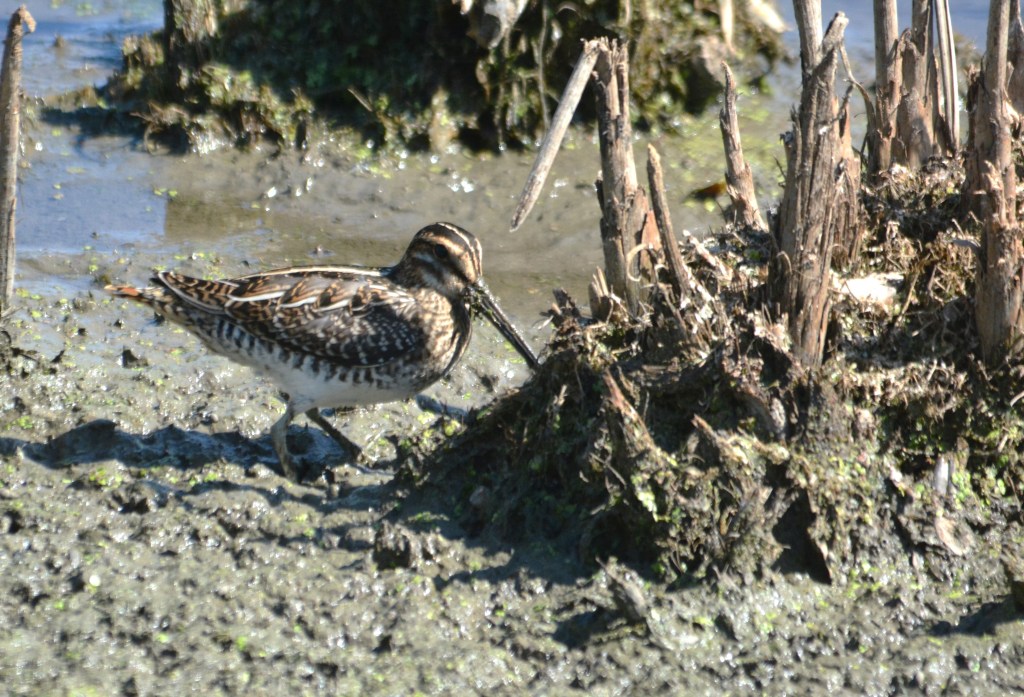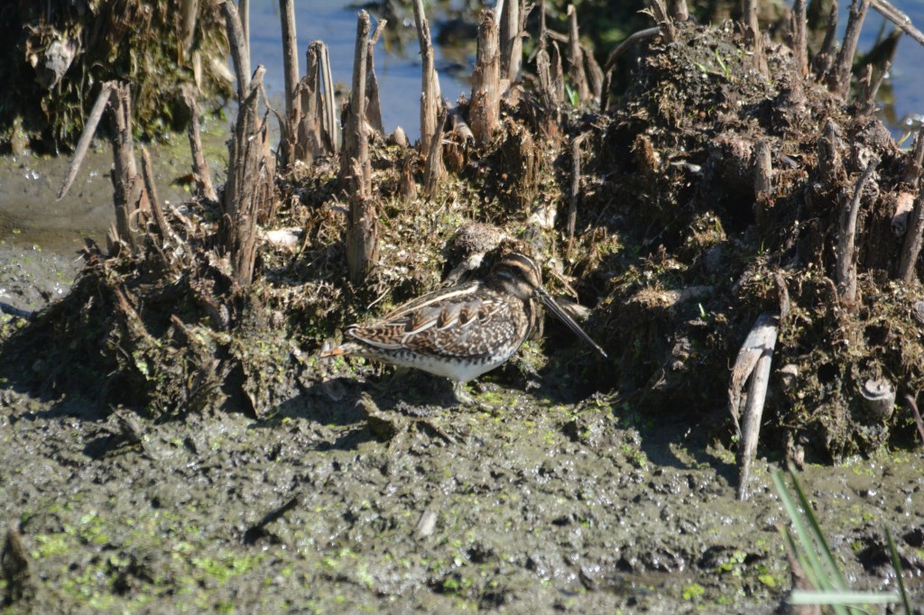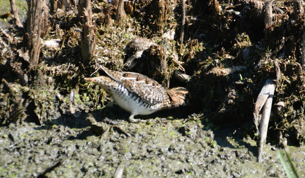 Oiseau de rivage grassouillet qui passe facilement inaperçu dans les prairies humides et les zones marécageuses. La silhouette semblable à celle de la Bécasse d’Amérique, mais beaucoup plus foncée, marques brunes sur le dessous et face rayée. Bec extrêmement long bec servant à fouiller dans la boue. Elle se nourrit de vers, d’insectes, de mollusques et de graines. Elle niche au sol, dans une dépression garnie de végétaux. Elle est présente sur tout le territoire du Québec, sauf l’Arctique.