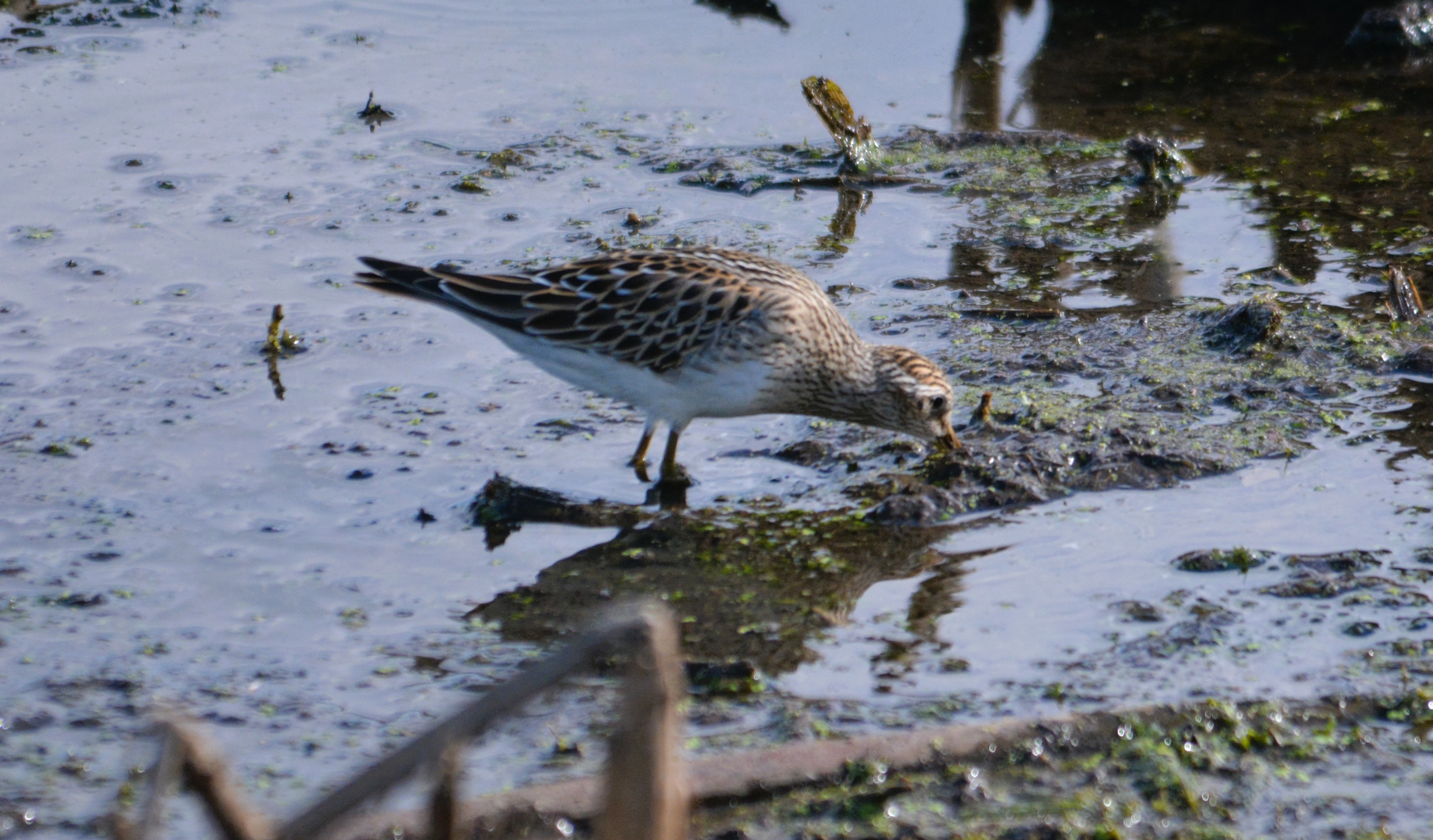 Un limicole migrateur qui fréquente les prés humides et les marais du Québec. Il se distingue des autres bécasseaux par sa taille moyenne, ses pattes jaune verdâtre, son bec brunâtre et ses rayures serrées sur la poitrine qui contrastent avec son ventre blanc. Les mâles sont plus gros que les femelles, mais ont le même plumage. Fait penser à un bécasseau minuscule, mais en plus gros. Le bécasseau à poitrine cendrée se nourrit principalement d’insectes, de vers et de petits crustacés. Il niche dans la toundra arctique et hiverne en Amérique du Sud.